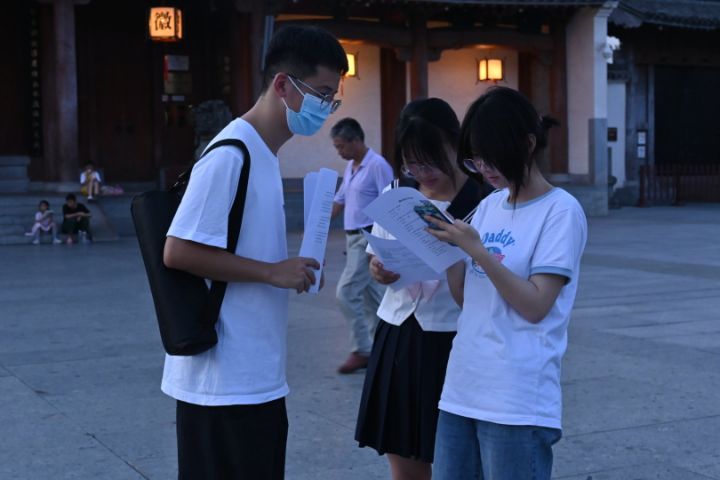 圖為團隊成員在古城內采訪居民。中國青年網 鄧兆淇 攝