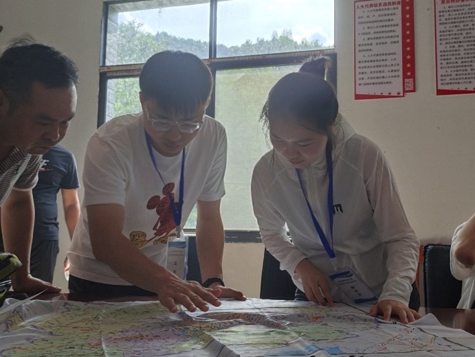 圖1、2 白霓鎮干部向實踐團成員介紹留守兒童情況與分布