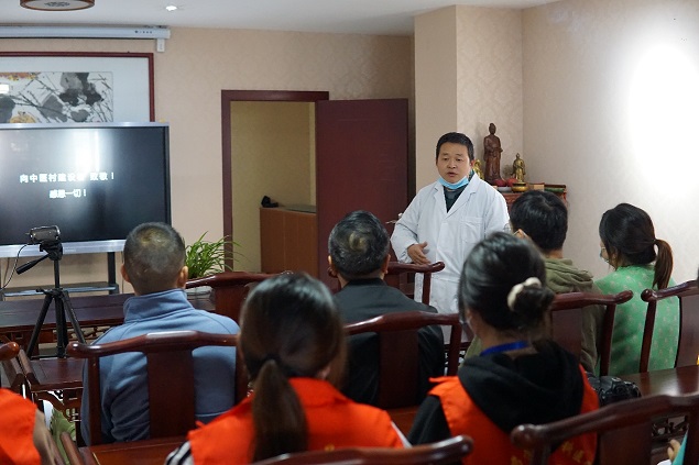 圖為余浩老師講述中醫村艱難的發展歷程,指出了中醫的重要性