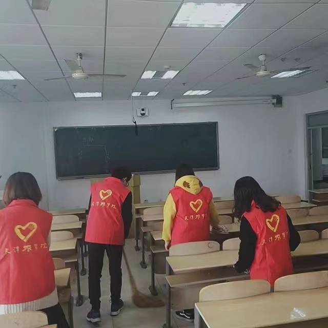 圖為青春獻黨志愿隊隊員在打掃“綠色文明上網”宣傳會的場地。 通訊員 孫雯萍 供圖