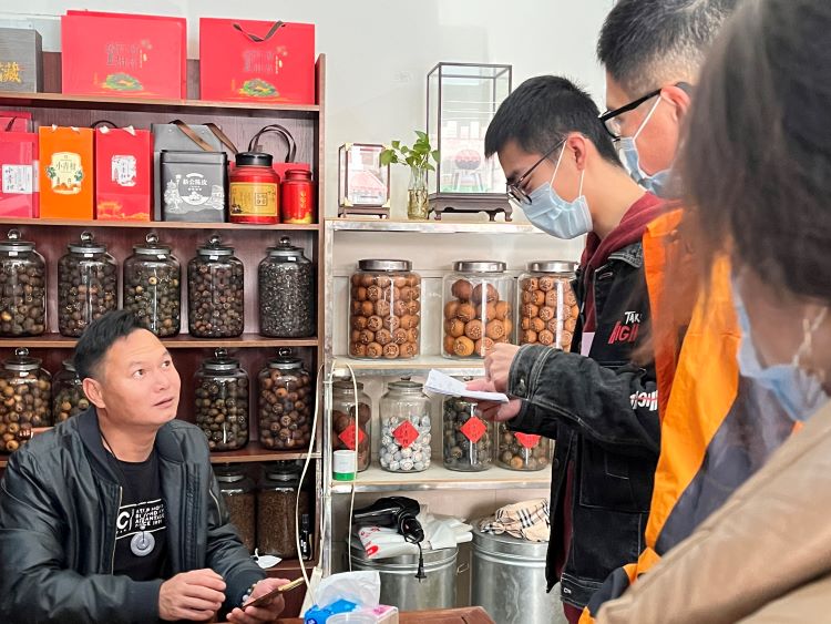 隨后,柑地負責人的招待了實踐團成員并接受了實踐團的采訪。經(jīng)過實地考察和采訪,實踐團成員了解到,如今茶坑的柑地種植已經(jīng)逐步走向機械化。柑園也使用無人機進行噴藥、巡查,但施肥仍是人工進行。茶坑種柑的園區(qū)有的可達五十畝甚至上百畝,年收入可過百萬。茶坑陳皮產(chǎn)業(yè)的發(fā)展,吸引了眾多茶坑的年輕人回到故鄉(xiāng)就業(yè)、扎根,也為茶坑村的發(fā)展注入了新活力。