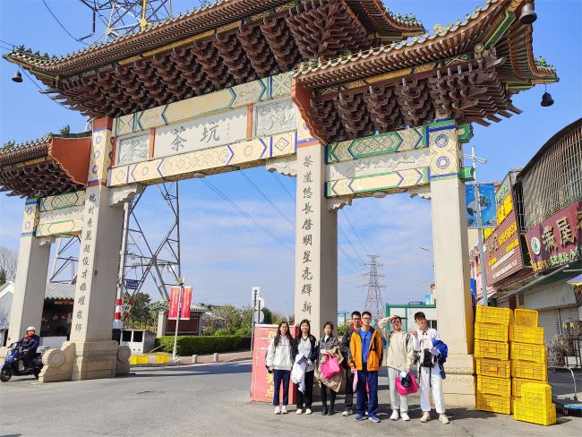 實踐團成員閱讀茶坑村“啟超文化”(上圖)