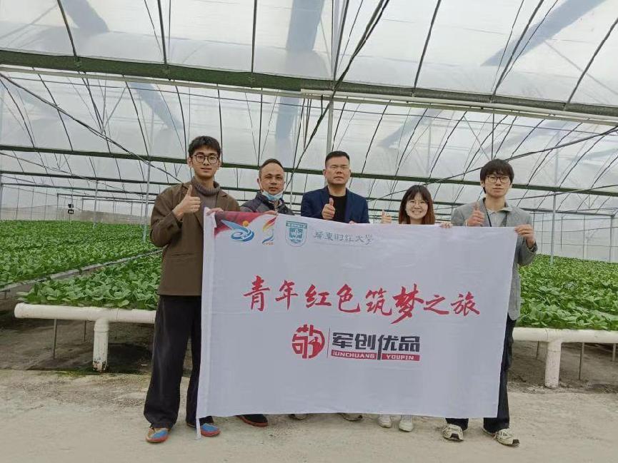 廣財“軍創(chuàng)優(yōu)品”項目團隊與粵鮮尚品生態(tài)農(nóng)業(yè)公司工作人員合影(來源:受訪者供圖)