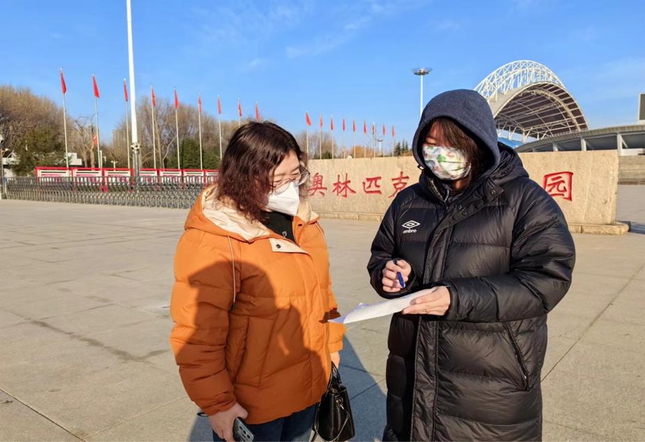 圖為實(shí)踐隊(duì)員在公園采訪調(diào)查。 實(shí)踐隊(duì)員 趙佳蕊 攝