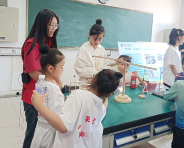 在物理小實(shí)驗(yàn)上,學(xué)生們表現(xiàn)出非常強(qiáng)烈的求知欲。