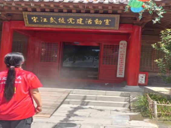 隊員進入宋江武校黨建活動室,與管理人員進行深入探討,他們為我們講解了水滸好漢城的發展和水滸文化的發源以及意義。隊員提出自身疑問的問題和他們進行親切的交流,隊員就其蘊藏的傳統文化這個問題向管理人員提問。通過他們的話語認識到水滸文化城是一座為展示水滸文化遺跡、酒文化以及武術文化而建造的一座景點。其蘊藏著多種傳統文化,展示了水滸故事的歷史背景、人物形象、文化內涵等方面的內容,讓游客更加深入地了解了水滸文化。