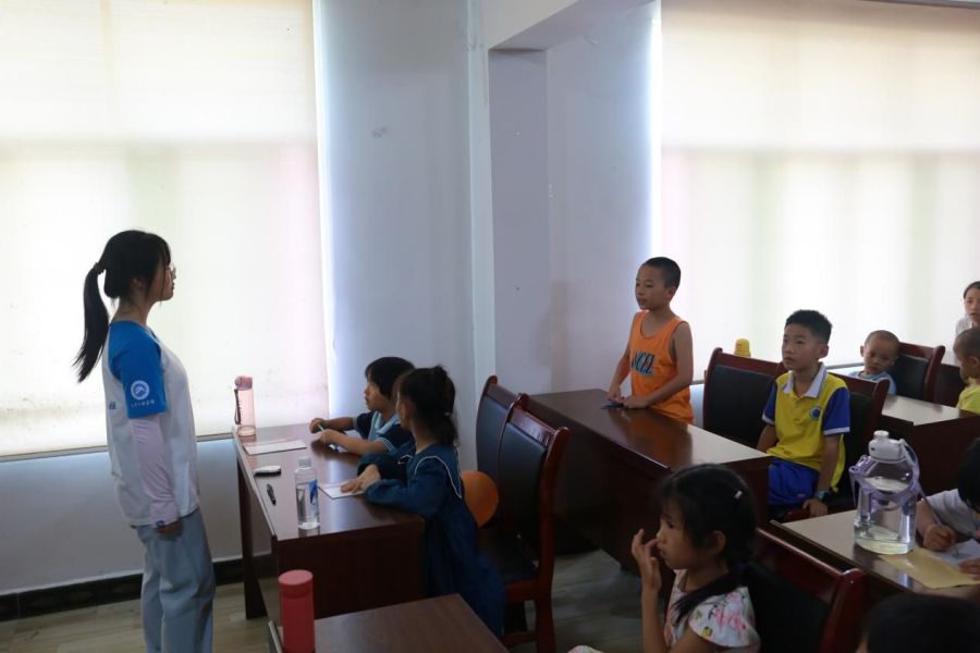 “右手手掌按壓在胸前代表‘我’,右手手掌從胸前往外揮90°代表‘來自何方‘。”課堂上,支教組志愿者肖馨怡向小朋友們講解了手語舞當中的動作所代表的含義,小朋友們認真模仿她的動作并仔細體悟。隨后,肖馨怡播放《感恩的心》,帶領小朋友們演繹這首歌曲,并在此過程中觀察糾正動作。在小朋友們動作逐漸熟練后,肖馨怡讓他們上臺展示手勢舞,小朋友們踴躍舉手,課堂氣氛非常活躍。