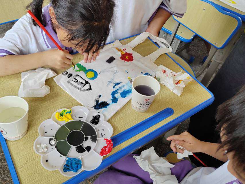 在繪出我的美麗家鄉課堂上,志愿者老師為孩子們準備了布包和繪畫材料,讓孩子們充分發揮他們的創造力和想象力,隨心所欲地繪制自己的美麗家鄉,讓孩子們感受和體驗繪畫的魅力,并在旁適時地給出建議。課程結束后,志愿者們把這個充滿孩子們感情和內心想法的布包送給了積極動手參與的孩子們。孩子們繪制的布包擺放在窗臺上也成了一道亮麗的風景線。