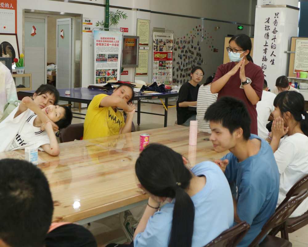 在平陽養(yǎng)和醫(yī)院暑期社會實踐的第二天,中國計量大學的“青陽興鄉(xiāng)”社會實踐小隊走入殘疾人之家,帶著最燦爛的笑容與最真摯的情感和殘疾人之家的小伙伴進行了一系列活動,包括“感恩的心”手語操教學和畫畫訓練。