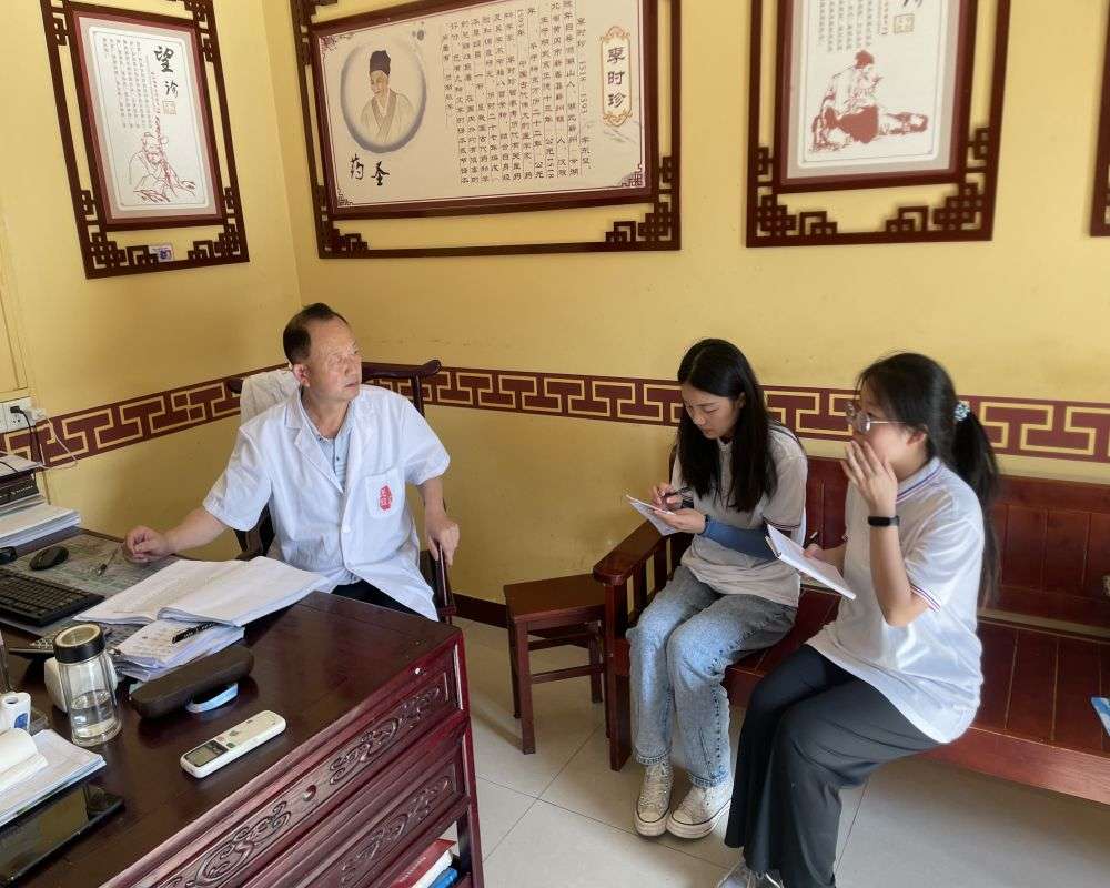 圖三:講師團成員對山有道種養殖專業合作社創辦人周文進行訪談鄉村健康的守護人—中池鎮裕民村傳統中醫蔡教根 中醫是中華傳統文化的精髓,具有悠久的歷史和博大精深的文化底蘊。講師團成員張紅艷、張付裕前往石泉縣中池鎮裕民村衛生室圍繞村醫薪資待遇、村民醫療衛生條件、進藥渠道等內容對村醫蔡教根展開回訪。蔡醫生回顧了自己從醫的初衷,并對村民的醫療健康情況進行了介紹。“秉持醫者仁心的精神,為村民的生命健康保駕護航。”蔡醫生認為這是一名村醫義不容辭的責任與使命。實踐隊員聆聽蔡醫生的講述后紛紛表示,鄉村醫生是最貼近億萬鄉村村民健康的“守護人”,推進健康中國離不開鄉村醫生隊伍建設,健全優質高效的鄉村醫療衛生體系、筑牢基層醫療網底至關重要。