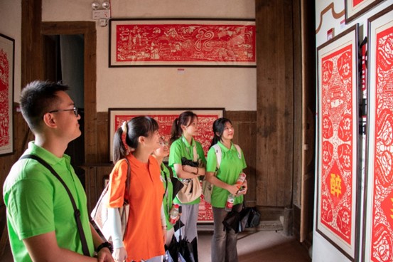 圖為實踐活動成員參觀剪紙藝術。通訊員 蔡思奇 攝