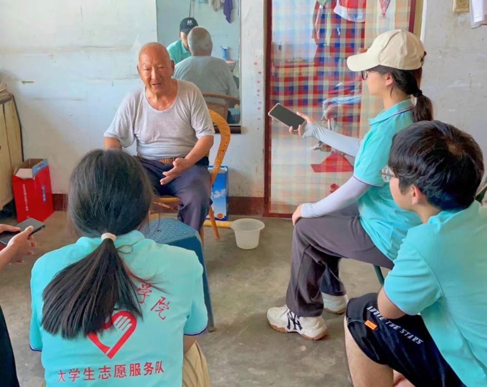 2023年7月6日下午,安陽師范學院法學院志愿服務隊——問渠青年尋訪團二組,在西下洹村委會工作人員的帶領下,來到了他們此次要尋訪的修渠者家中。