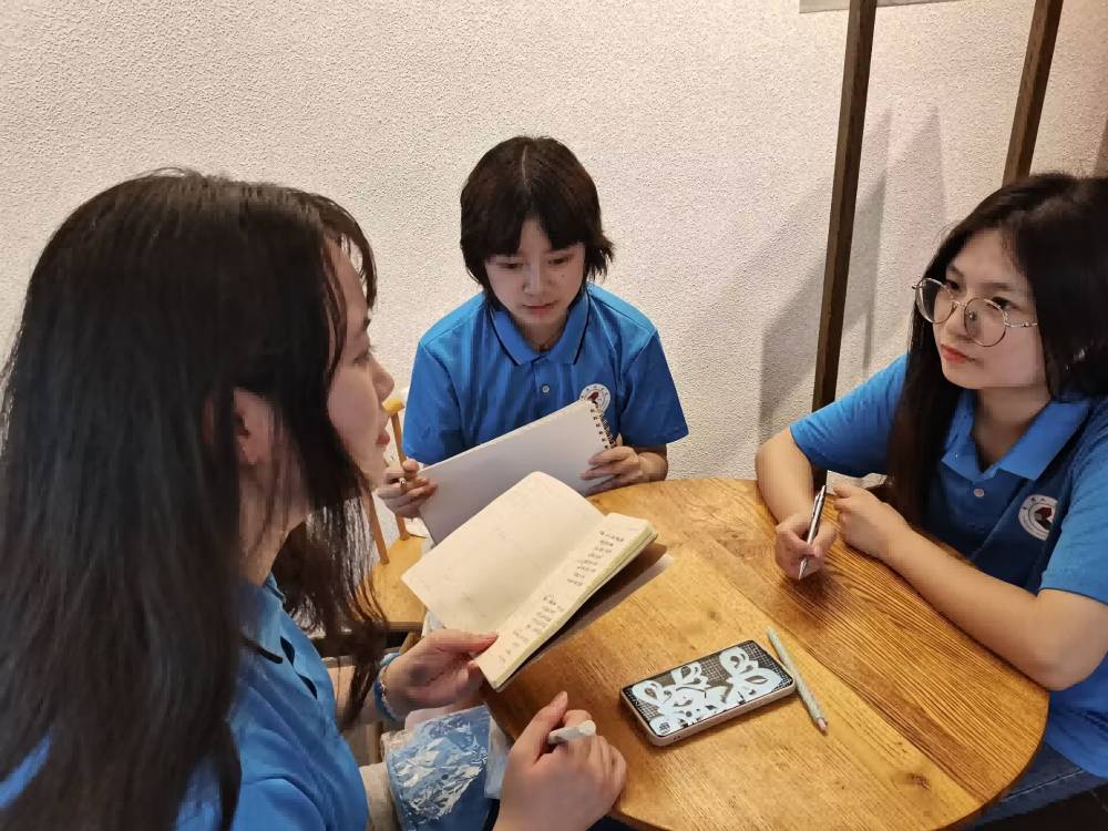 即使下午悶熱難耐,也抵擋不住團隊成員們實踐的熱情。在青果巷的門口,成員們早早來到實踐地點,將準備好的旗幟和橫幅展開,拍攝集體照片,暑期實踐拉開序幕。團隊成員們針對實踐的主題非遺纏花進行了熱烈的討論,纏花作為一種傳統的手藝,距今已有百年歷史,而存于民間的藏品少之又少,古老又傳統的藝術本身并不容易被人深入了解,團隊最首要的任務便是將纏花這一非遺手藝帶入到大眾視野中,做到宣傳和普及的效果。另一方面,團隊更要實地考察古色古韻的景區,從傳統與現代商業商品的碰撞中吸收經驗,學習和創新非遺纏花形式,讓纏花在新時代中更具備新的使命,碰撞出新的火花,為纏花的進一步發展提供新的思路,開辟新的途徑。
