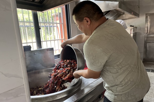 在支教團隊籌備教學工作的同時,當地人民也給予極大的物資支持。洞泉村村委書記程書記為支教團隊特意送來后勤物資,帶來豐富的食材并且親自下廚為支教活動做小龍蝦等當地美食。支教隊員們積極幫忙,主動參與清洗小龍蝦的任務。因天氣炎熱酷暑難耐,支教成員們趁著傍晚太陽落山的時間出校購買物資。由于學校周圍沒有較近的日用品商店,他們只能以小分隊的形式徒步走到距離學校較遠的商店購買生活物資。一路上,隊員和隊員之間相互照顧。每次外出,隊長何飛揚做出規定,外出時每隊一定要有兩名以上的男生同行,以保障出行安全。