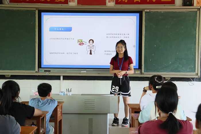 暑氣正濃,假期正值意外高發(fā)期,為進一步加強中小學生安全防范意識和自救能力,7月6日下午,嶺南師范學院“萌芽”社會實踐隊在吳川市塘綴鎮(zhèn)板橋上杭中學開展“防火、防電、防溺水”主題活動,本次活動采用理論教學與實際演練相結合形式,為鄉(xiāng)村學生健康成長保駕護航。