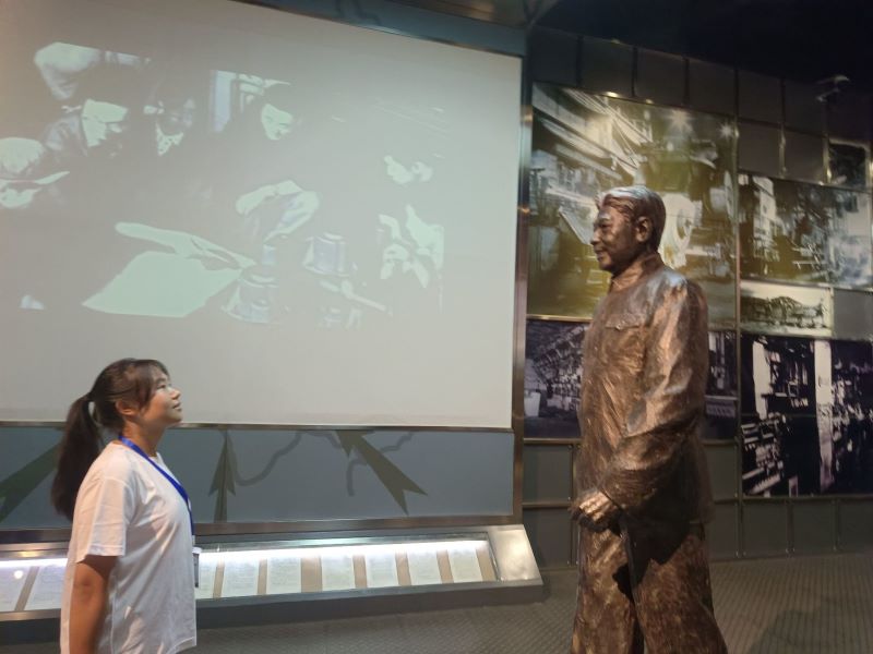 圖為團隊成員參觀先輩們刻苦工作的銅像,為先輩們不畏艱險,一心奉獻的精神感到震撼。中國青年網通訊員 李傲 攝