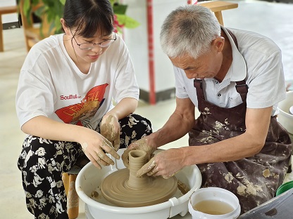 為深入調研挖掘扎根于廣大鄉村的手藝人,助力鄉村振興,“傳承鄉村工匠,尋道未來鄉村“——浙江金融職業學院赴衢州碗窯鄉村振興暑期社會實踐團于2023年7月3日來到衢州碗窯燒窯制瓷技藝傳承人曾三滿師傅的工作室深入體驗”拉坯“的魅力。
