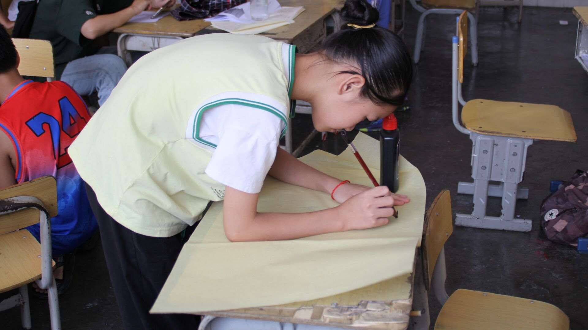 圖為學生在認真練習書法筆畫