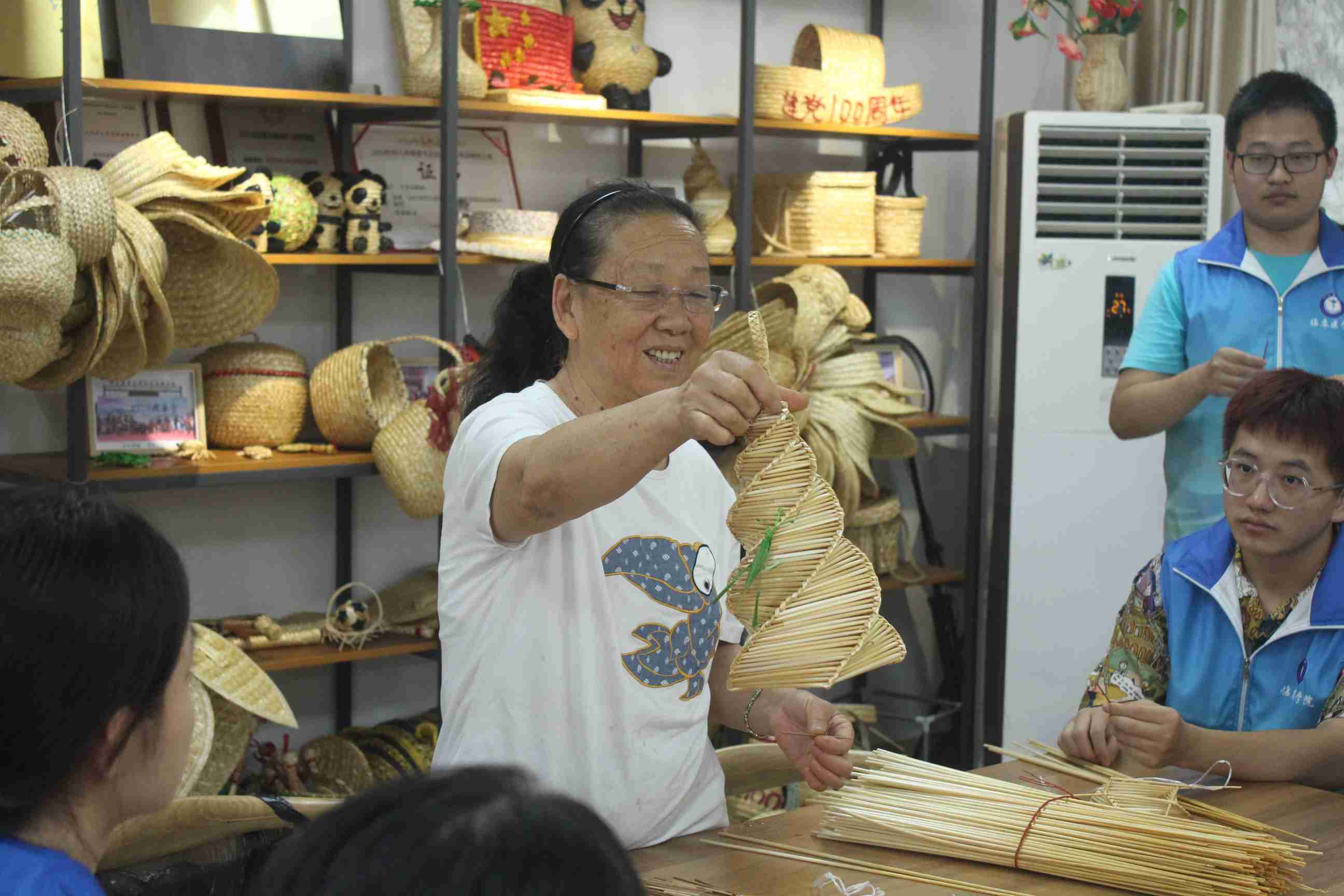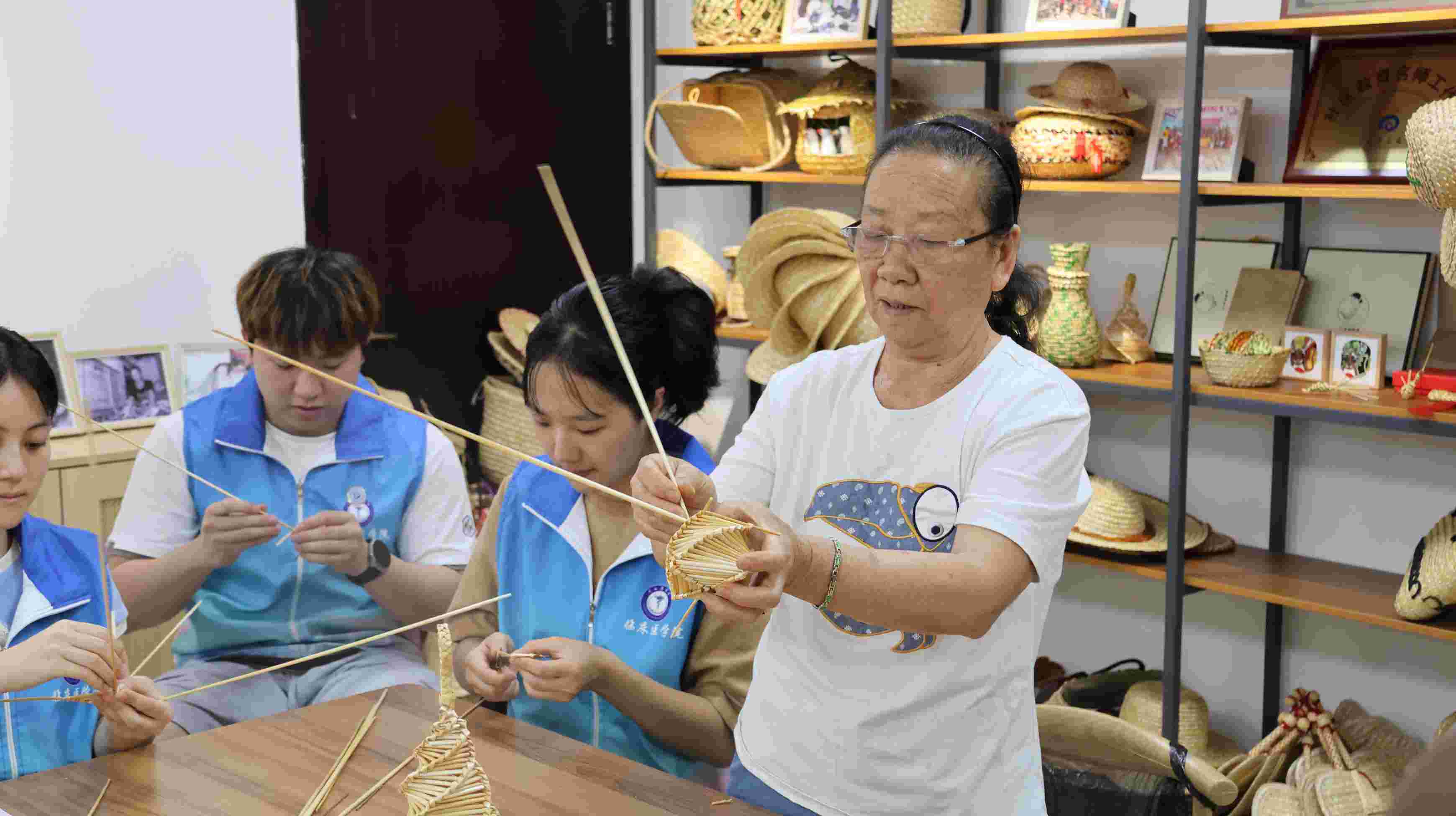 圖為 非遺傳承人教習實踐隊員們草編時場景。