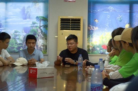 圖為研究生王嘯為實踐隊隊員分享實踐經驗和感悟