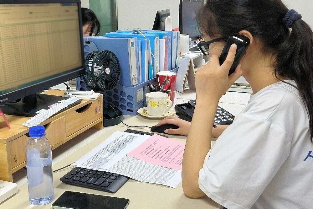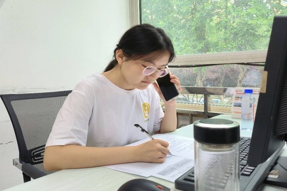 圖為團隊隊員正在進行電話隨訪。通訊員 殷彤彤 供圖