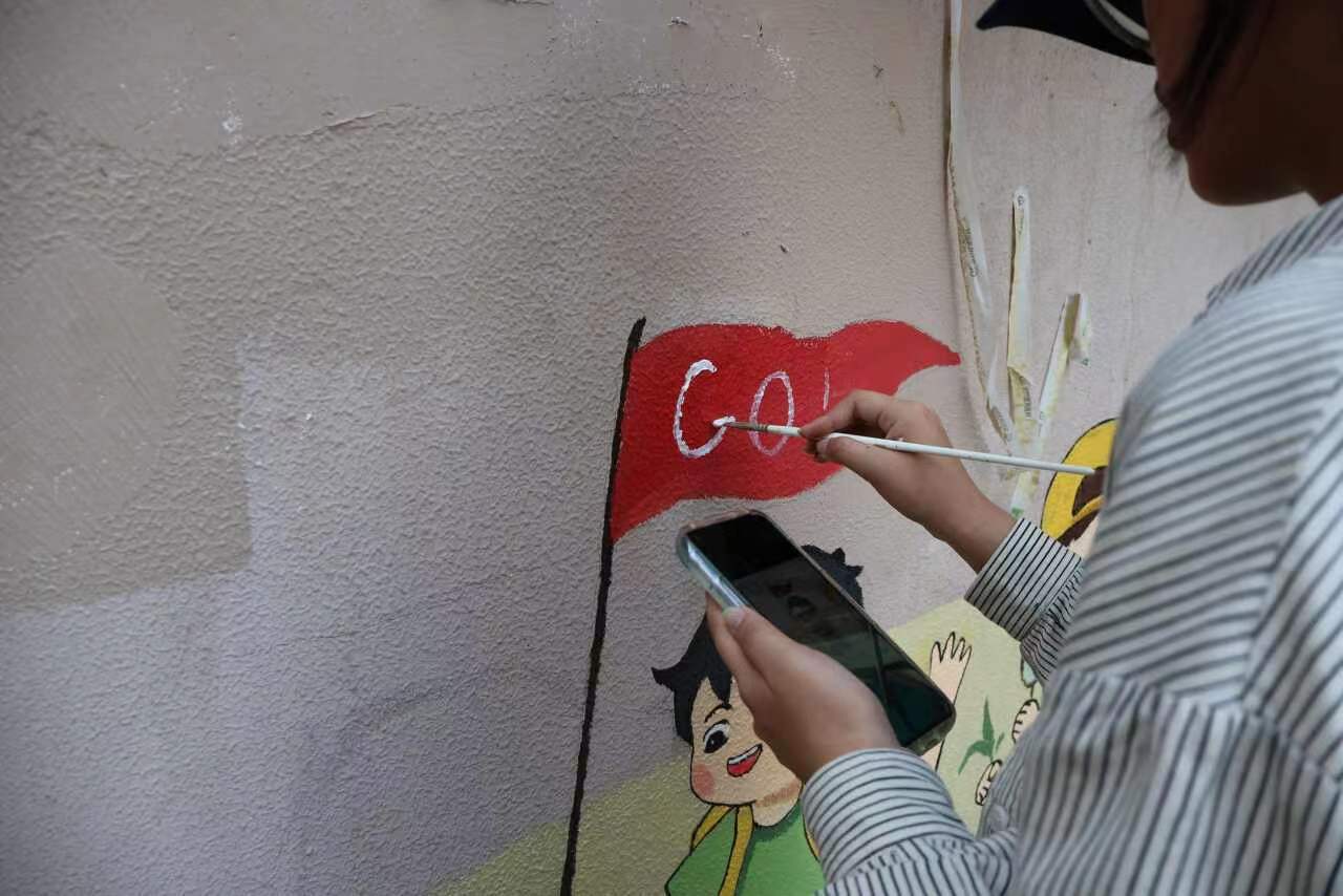 解決問題的過程架起了團隊溝通的橋梁,通向不斷進取的遠方,今年的暑期社會實踐活動,我們放下筆走向社區,去解生活的題,贏得老師喝彩,笑容滿堂。在團隊成員的共同努力下,墻繪完成過半,墻上色彩匯聚成片,漫漫燦燦迎接明日曙光。