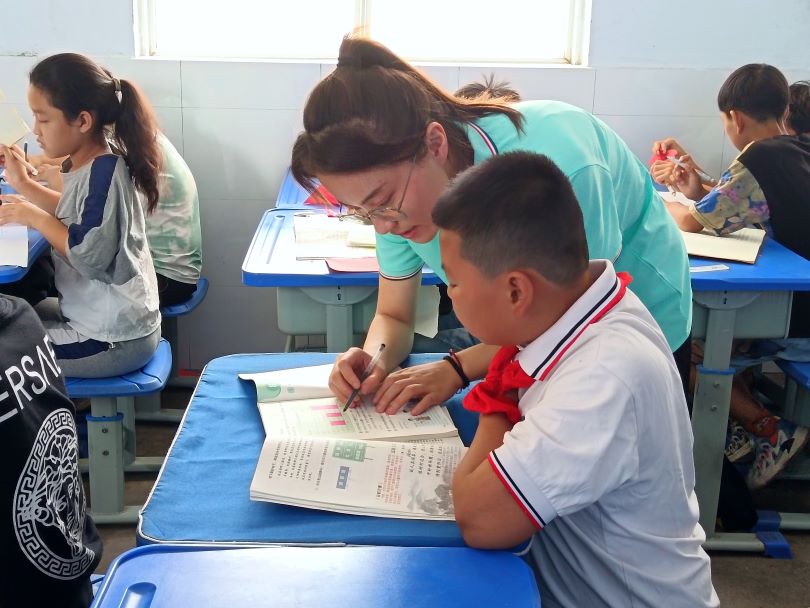 為減輕學(xué)生家長居家輔導(dǎo)作業(yè)的負(fù)擔(dān),依據(jù)學(xué)生的個人知識能力的差異,在遵循學(xué)生學(xué)習(xí)知識內(nèi)在邏輯的前提下,我們對學(xué)生開展因材施教的作業(yè)輔導(dǎo)。豫才支教隊深入學(xué)生,通過“問”“教”“答”等方式解決學(xué)生疑難問題。同學(xué)們在老師的幫助下,對自己的暑期作業(yè)進(jìn)程有了明確的規(guī)劃。