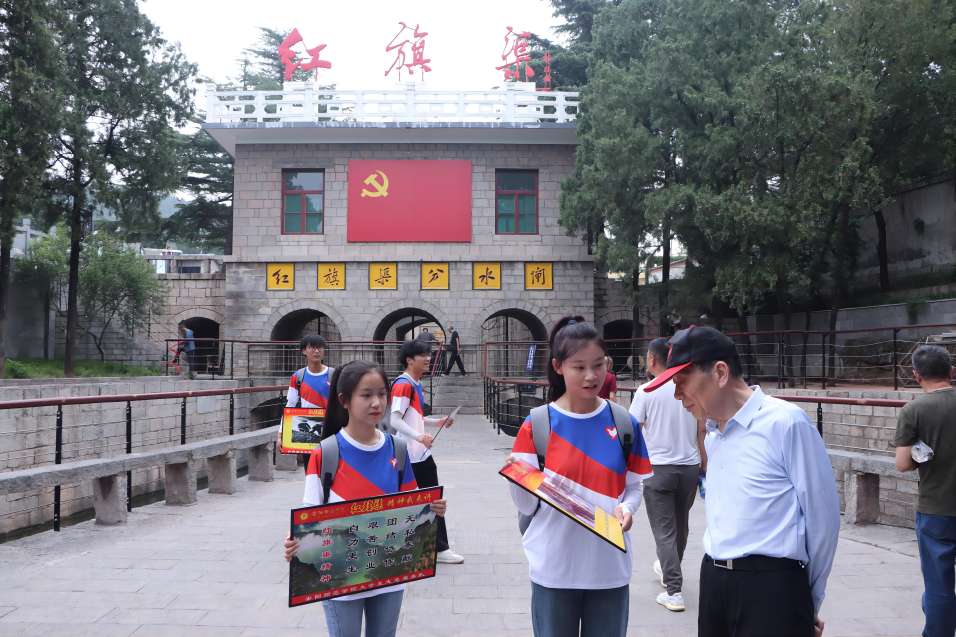 在參觀紅旗渠分水閘時(shí),宣講隊(duì)進(jìn)行實(shí)地宣講,游客們被宣講隊(duì)員富有感染力的宣講內(nèi)容深深吸引,駐足不前。在前往紅旗渠主干渠的咽喉工程——青年洞途中,面對陡立的峭壁和高險(xiǎn)的懸崖,宣講隊(duì)員充分體會到當(dāng)年紅旗渠修建時(shí)的艱辛,真切感受到林州人民百折不撓、斗志昂揚(yáng)的英雄氣概。大家紛紛表示,在黨的二十大精神引領(lǐng)下,要努力學(xué)習(xí)紅旗渠精神,貢獻(xiàn)青春力量,做有理想有擔(dān)當(dāng)?shù)臅r(shí)代新人。