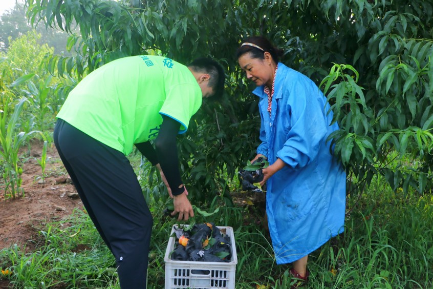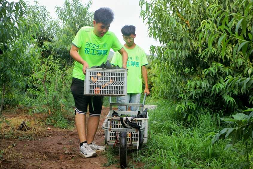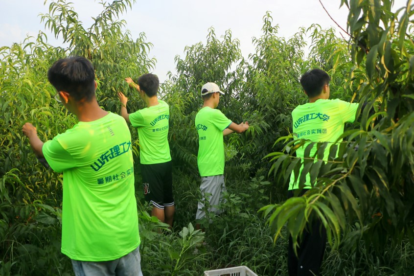 鄉(xiāng)村特色產(chǎn)業(yè)是推進(jìn)鄉(xiāng)村振興戰(zhàn)略實(shí)施的重要抓手,要順應(yīng)產(chǎn)業(yè)發(fā)展規(guī)律,立足當(dāng)?shù)靥厣Y源,推動(dòng)鄉(xiāng)村特色產(chǎn)業(yè)聯(lián)合發(fā)展。近日,臨沂市蒙陰縣岱崮鎮(zhèn)千畝桃園種植基地里,鮮艷欲滴的蜜桃掛滿枝頭,一幅鄉(xiāng)村振興的美好畫卷映入眼簾。7月10日,農(nóng)工先鋒社會(huì)實(shí)踐團(tuán)前往臨沂市蒙陰縣岱崮鎮(zhèn)蜜桃種植基地,在種植農(nóng)戶的幫助下,親身體驗(yàn)蜜桃采摘。