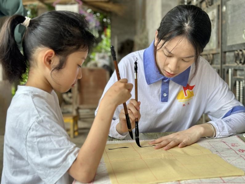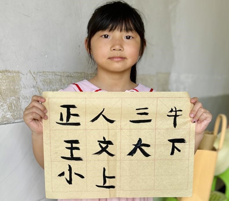 工欲善其事,必先利其器。團隊成員以文房四寶為切入點介紹書法工具,再從握筆姿勢到寫字的間架結構、筆畫筆順等入手,教孩子們書寫,讓孩子在書寫的過程中接受優秀傳統文化的熏陶,提高文化修養和情操。