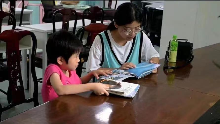 探望過老人后,隊員們來到了院里的兒童發展中心,這里有一位7歲的眼盲小女孩,今年剛上一年級,稚嫩的臉龐聽到實踐隊的到來時,露出了燦爛的笑容。雖然她的眼睛有缺陷,但一點都不怯場內向,始終笑著與隊員說話,跟隊員講述她在學校里遇見的趣事。隊員給她讀童話故事時,她還會時不時發表自己的看法,純真的話語逗笑了在場的隊員和工作人員,整個兒童發展中心洋溢著歡樂活潑的氣氛。