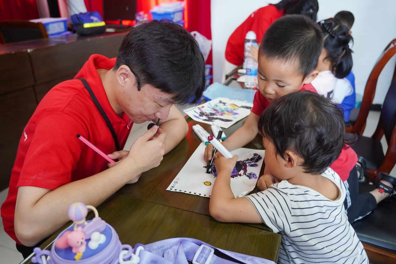 伴隨著畫筆與紙的摩擦聲,孩子們稚嫩的聲音響起,“老師,雄獅該怎么畫呢”“姐姐,你看我的雄獅是紫色的”……面對小朋友們的熱情分享,志愿者們仔細(xì)傾聽、耐心解答,給予孩子們關(guān)心與陪伴。