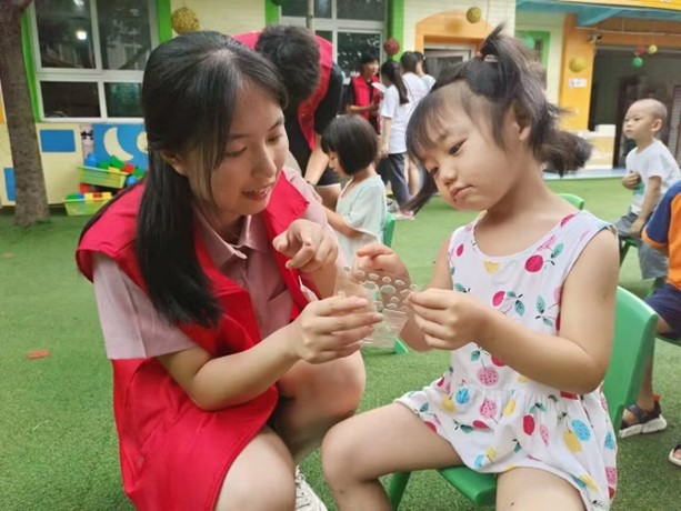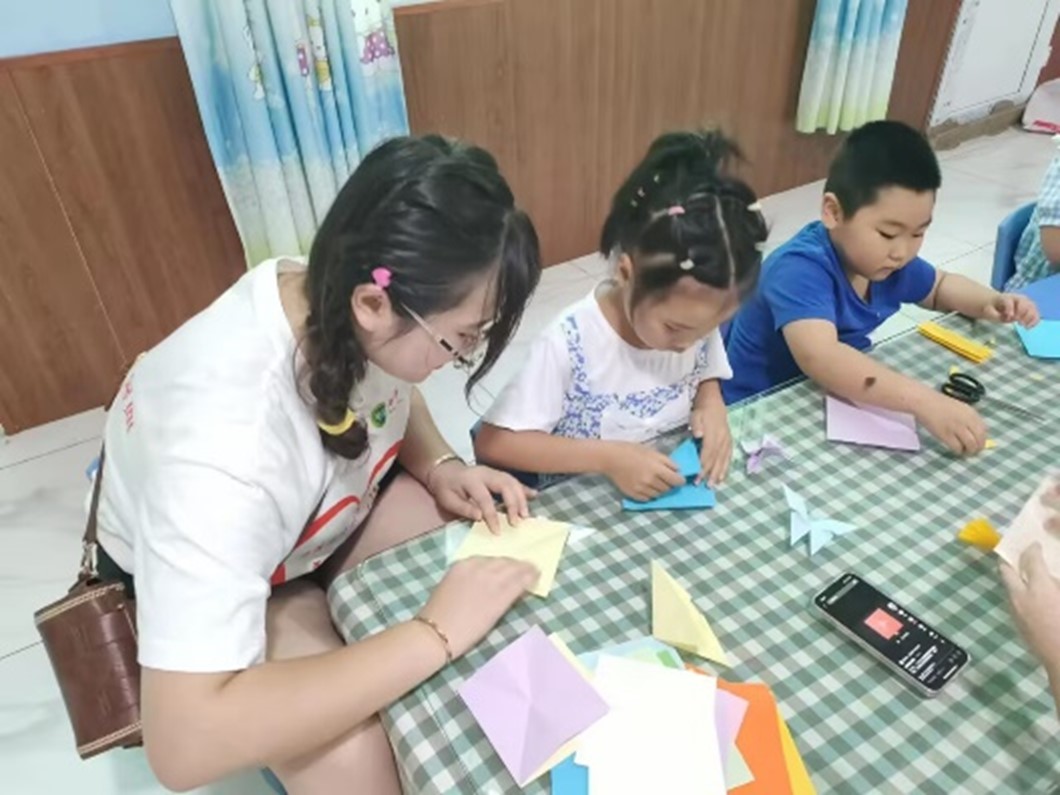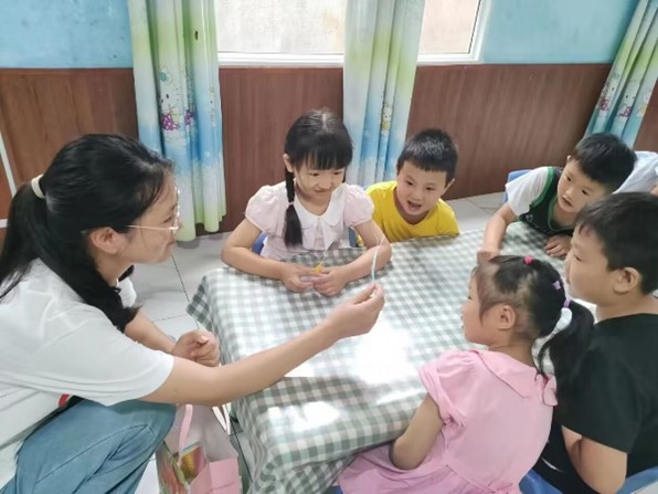 隊伍成員們寓教于樂,與孩子們一起進(jìn)行手工制作,教授孩子們簡單的繪畫技巧,與他們分享有趣的故事,并且開展“大風(fēng)吹”游戲等互動活動。這些活動旨在激發(fā)孩子們的創(chuàng)造力、想象力和團(tuán)隊合作精神,用以促進(jìn)他們的全面發(fā)展和快樂成長。