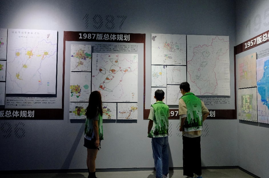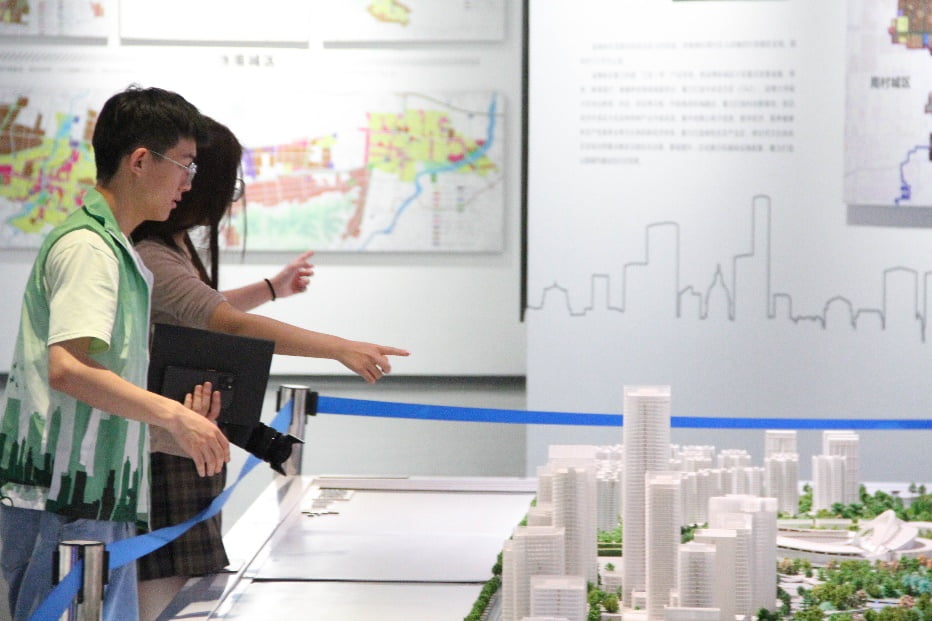 圖為林小青實(shí)踐團(tuán)成員觀看總體規(guī)劃布局展覽板 岳慶雨 供圖