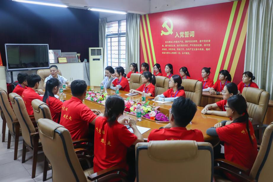 (通訊員 葛文婷)7月10號下午,黃增組織員和陳燕老師蒞臨湛江市第十九中學,看望“嶺航”社會實踐隊的隊員們。