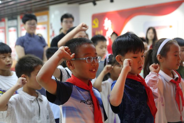 微團課結束后,在志愿者寧鄭洋的帶領下,小學生們進行了莊嚴宣誓,“我是中國少年先鋒隊隊員.......好好學習,好好鍛煉,準備著:為共產主義事業貢獻力量!”擲地有聲的誓言為每一位同學今后的精神生活注入了新動力。