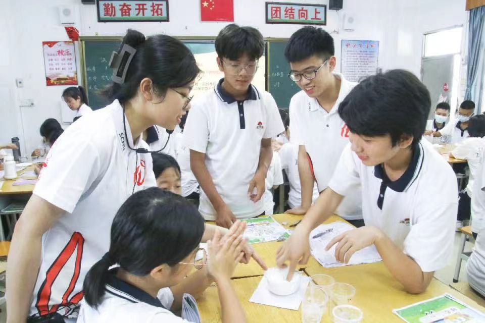習近平總書記曾寄語實踐團:“同學們的憂國憂民,只有到基層中去、到實踐中去、到人民中去,才能真正知道所學的知識如何去發揮、如何去為社會作貢獻。”華師化院團委服務隊牢記習近平總書記的囑托,深入陸豐市龍山中學,以傳承陸豐非遺文化為切入點,以提升學生文化素質為落腳點,將理論知識付諸于實踐,將育人思想應用于實際,開展化學游戲、黨團史學、成長關懷、文化傳承等系列課程,切實關心學生在學業情況、心理健康、思想道德等多方面的狀態,引導學生樹立與時代主題同心同向的理念。行創新化學教學模式,擔筑夢育人報國使命,響應祖國時代號召,華師化院團委服務隊勇居前列!