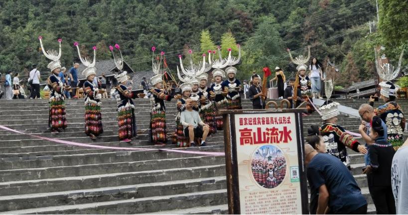 圖為千戶苗寨迎接游客的“高山流水”禮儀展示。多彩大學生網通訊員 凌可 攝
