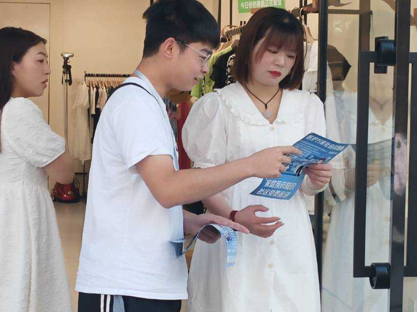 圖為實踐隊員在廣場向路人進行安全用藥科普。通訊員 李雪