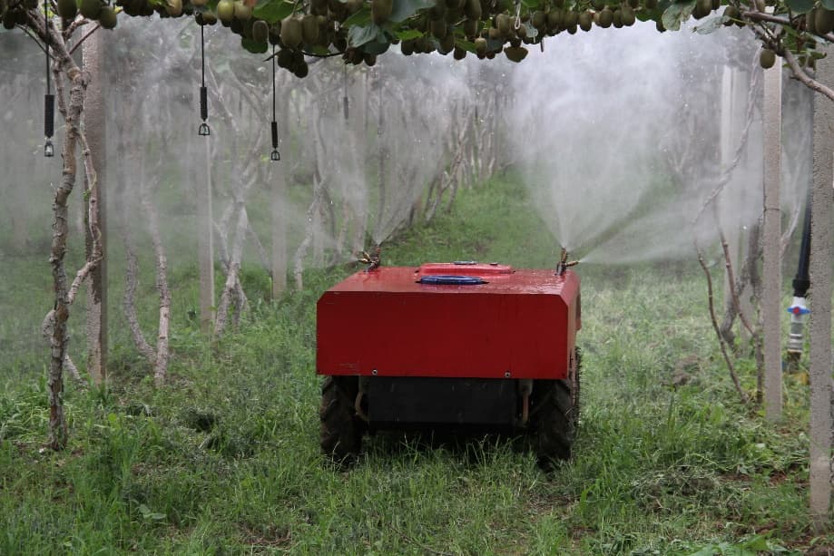 圖為獼猴桃園區(qū)智能小車(chē)進(jìn)行噴灑農(nóng)藥工作 通訊員 岳慶雨 供圖