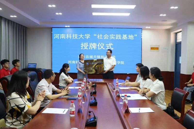 河南科技大學食品與生物工程學院大學生社會實踐基地授牌儀式在汝陽縣城關鎮楊莊小學會議室舉行。隨后,在校領導的帶領下團隊對實踐地點的基本狀況有了更深入的了解,并根據實際情況對支教和實踐的安排做了更細致的規劃。