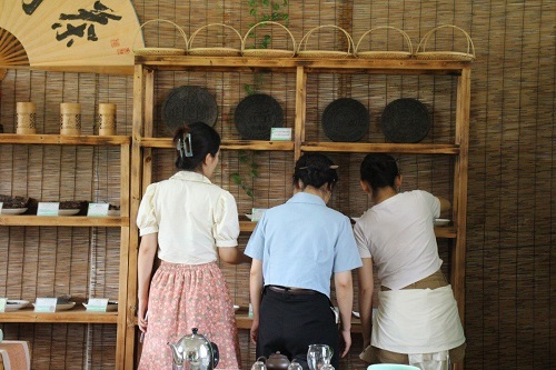 圖3為實踐團成員參觀茶藝室成果展示墻