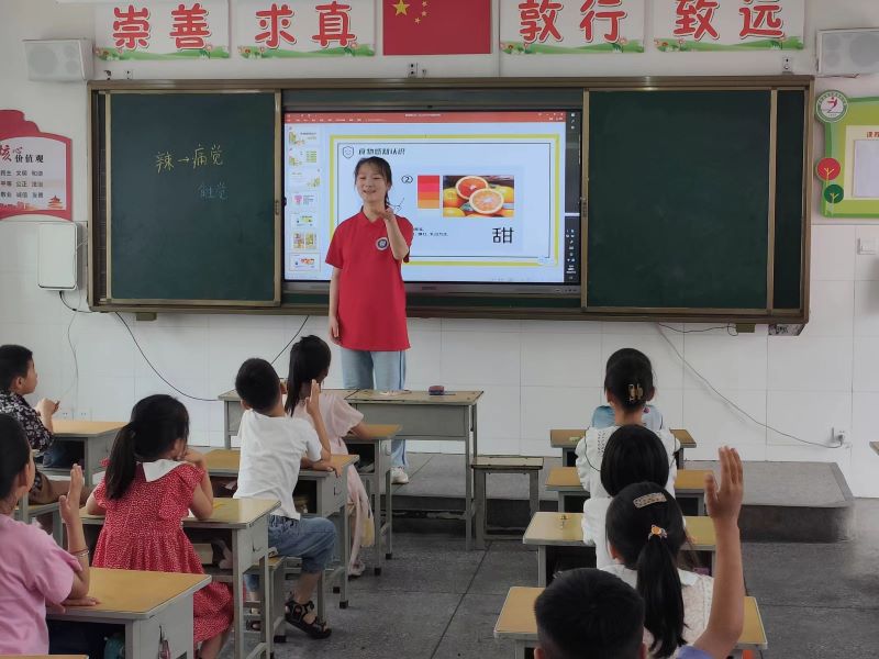 實踐團隊聚焦中國鄉村兒童營養失衡、教育資源匱乏等不良現象,結合當地的學情教情以及自身專業特長,通過趣味實驗+科學知識的形式,開發本土食育課程,包含趣味數學、趣味英語、美術、音樂、食物感知認識、餐桌禮儀養成、膳食意識培養、飲食文化探究等內容,引導孩子們培養良好的飲食習慣,讓孩子們在學習和娛樂中充分領略食品營養知識的魅力。