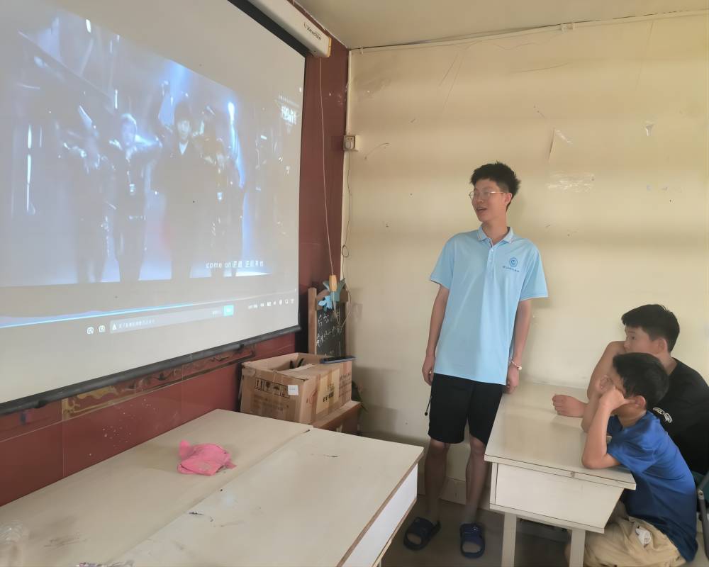 活動(dòng)伊始,隊(duì)員李展鵬借助投影設(shè)備,為孩子們準(zhǔn)備了諸如《學(xué)習(xí)雷鋒好榜樣》等紅色歌曲,但由于當(dāng)時(shí)天氣較為炎熱,且實(shí)踐地缺乏風(fēng)扇,空調(diào)等硬件設(shè)施,孩子們的熱情受外部環(huán)境影響,課堂活躍度較為低迷,縱使主講人盡力帶動(dòng)氣氛,孩子們也呈現(xiàn)出不愿配合的趨勢(shì)。