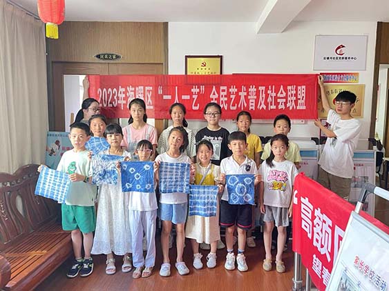 本次社會實踐中,趙芳怡同學于社區中進行了為期一個月的協助工作,負責一些基礎事務的處理,同時配合社區工作人員開展“全民藝術”活動。在扎染藝術課堂中,她負責協助老師進行實踐授課。在整個課堂實踐過程中,她不僅學習到了有關扎染的知識,同時也體會到了藝術的魅力。