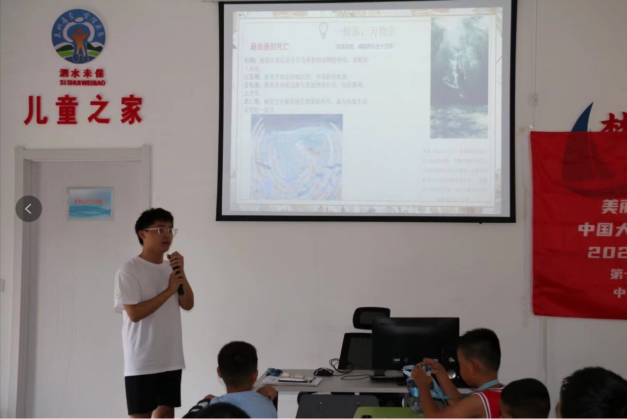 下午,泗海承風(fēng)支教隊(duì)組織同學(xué)們進(jìn)行自習(xí),輔導(dǎo)孩子暑假作業(yè)、幫助孩子預(yù)習(xí)新課,并帶領(lǐng)孩子們閱讀課外書。下課后,孩子們在支教隊(duì)成員的帶領(lǐng)下在院子里進(jìn)行“搶凳子”、丟沙包等戶外游戲,經(jīng)過層層角逐最后決出一名冠軍。最后一節(jié)課,是由支教隊(duì)成員鐘鳴遠(yuǎn)為同學(xué)們講授的