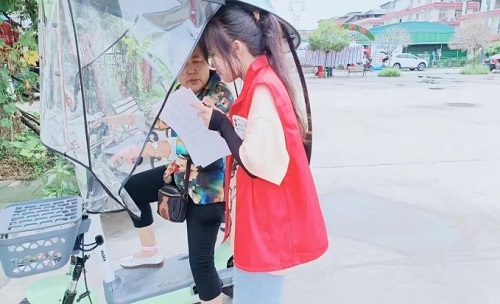 民意調查是了解民情、民心的重要手段,“心穩致遠”隊的隊員們采取親自分發調查問卷的形式與居民進行面對面的交流。調查問卷涵蓋了社區設施建設、環境保護、社區服務等各個方面,這在一定程度上幫助社區工作人員了解居民對社區現狀的滿意度和改進建議從而方便社區對癥下藥。