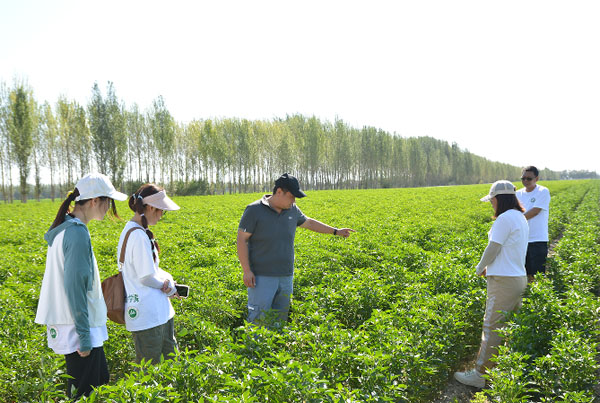 在6連黨支部書記王超和連長李永蘭的帶領下,團隊來到田間地頭,實地考察學習當地主要農作物的情況。“今年所種的板椒品種是紅龍16號,平均畝產500kg左右,基本上都是向疆外銷售,根據不同地區的需求,種植出的顏色也略有不同,比如北方地區喜愛食用深紅色的板椒,西南地區喜愛食用鮮紅色的板椒。”王超書記一邊指著板椒地一邊對同學們說到。實踐團隊成員觀察了板椒長勢、結果情況、雜草生長數量等相關情況,發現今年的板椒由于六月底的冰雹影響植株較矮,果實較小,對這些情況進行定性分析,為職工耕種提出最佳建議。