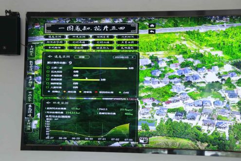 結束與阮書記的會接,實踐團在村委會工作人員來到村委會“數字一張圖”前觀看五四村宣傳片,聽工作人員講解,整體了解五四村人口狀況、產業現狀、治理模式、村務情況、生態環境、黨建結構、公共服務等內容。