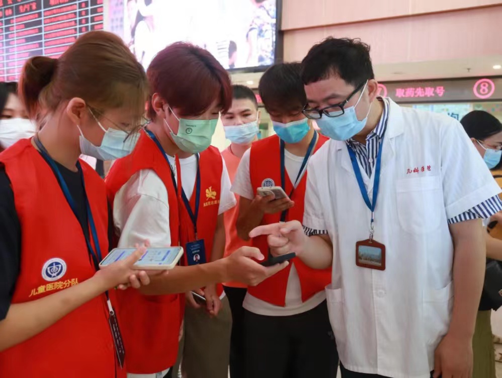 活動中,實踐隊成員就地采訪了部分就醫家屬,了解電子醫保和兒童醫保碼的使用普及程度以及用戶體驗。同時,為了讓更多公眾了解“互聯網+醫保”政策,實踐隊成員們還分別在醫院內外向就醫人員和路人發放電子醫保宣傳單,以簡單易懂的圖文方式介紹電子醫保申領指南,致力于推進醫療機構實現醫保電子憑證全流程掃碼就醫。